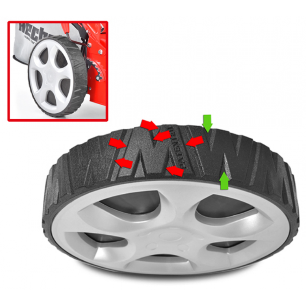 - Запатентований дизайн коліс W – покращена маневреність і зчеплення.