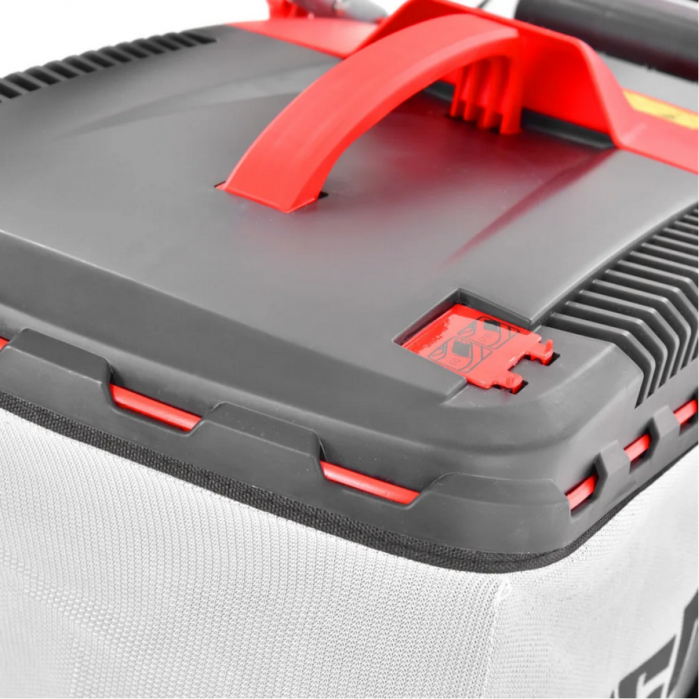 Місткий травозбірник на 60 літрів з міцної тканини має функцію індикатора наповнення.