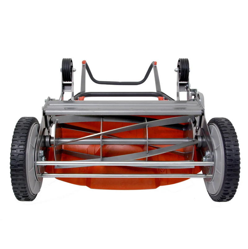 У даній косарці передні колеса більше задніх (250 мм) через спеціальну конструкцію. Така особливість допоможе косарці бути стійкою на нерівних газонних ділянках.