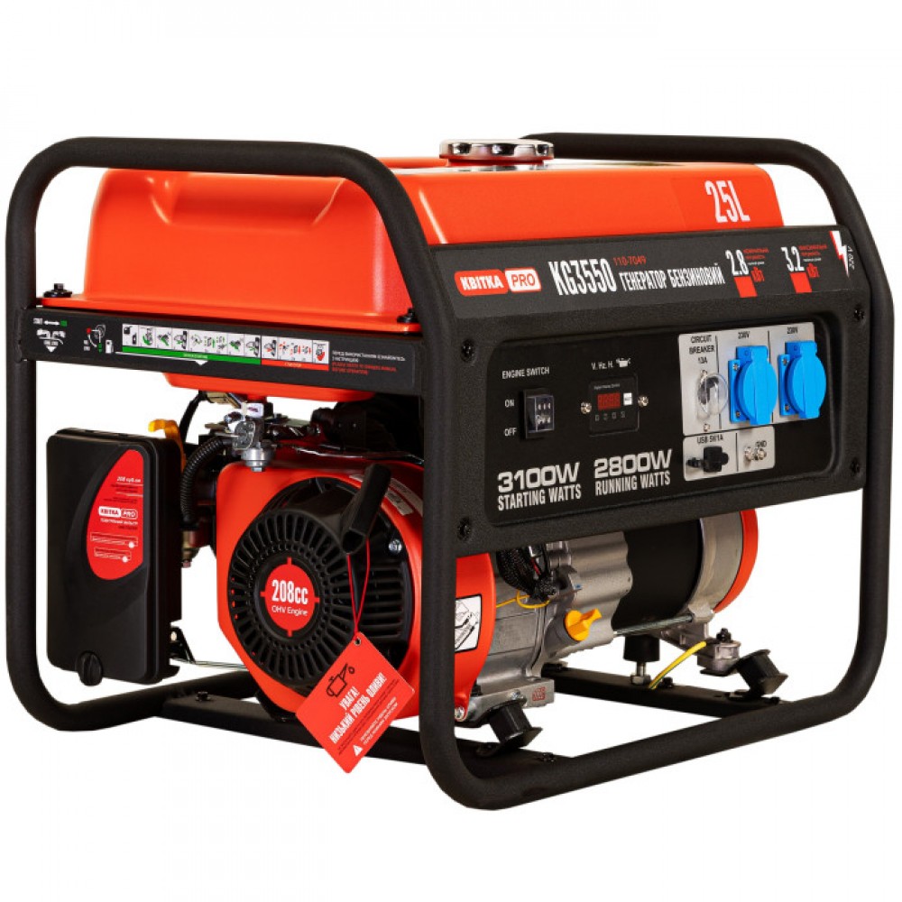 Генератор бензиновий 2,8/3,2 КВт KG3550 ручний пуск б/к, КВІТКА PRO