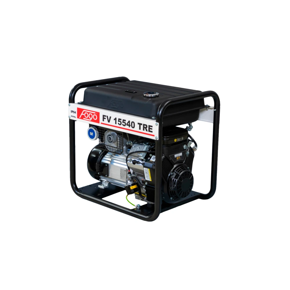 FOGO FV 15000 TE- трифазний бензиновий генератор із двигуном Vanguard 3854.. Запуск відбувається з допомогою електростартера або вручну. Номінальна потужність генератора на 1 фазі 6 кВт, на 3 фазах 10 кВт. Номінальна сила струму на 1 фазі 26,1 А, на 3 фазах 18,1 А. У генератор вбудована система стабілізації напруги (AVR) та термореле, що відключає двигун при досягненні критичної позначки робочої температури. Додатково реалізовано технологію захисту двигуна від роботи без мастила з його аварійним відключенням.