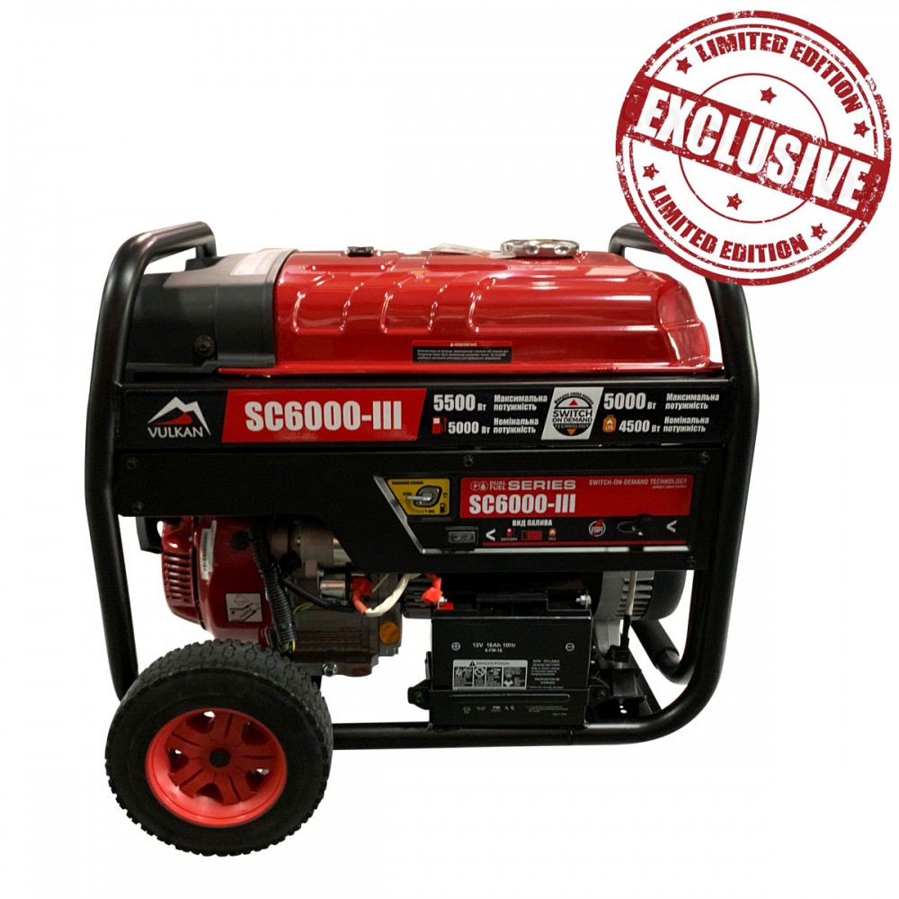 Газобензиновий генератор Vulkan SC6000-III - пристрій для забезпечення електричним струмом обладнання та електроприладів, в умовах, коли немає можливості скористатися іншими джерелами електроенергії. Електростанція Vulkan SC6000-III здатна працювати від двох видів палива: бензинуі зрідженого газу LPG (пропан-бутану).