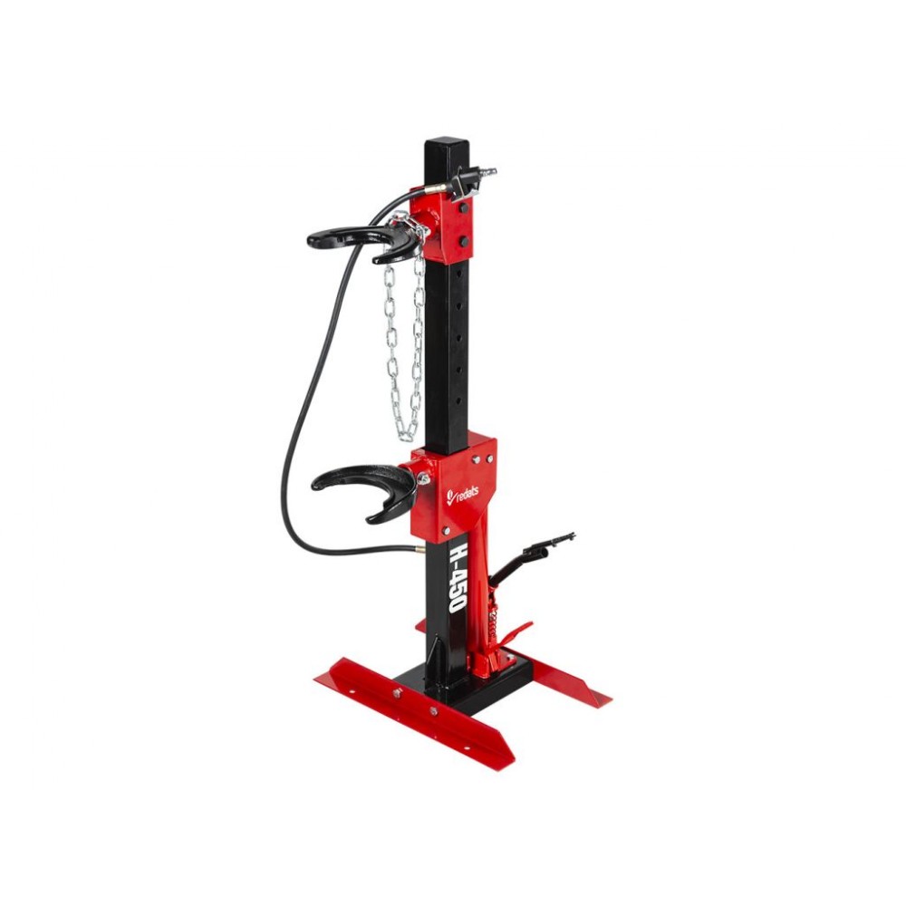 Гідравлічно-пневматичний знімач пружин 1 т REDATS H-450 - це високоефективний інструмент для професійних автосервісів, який забезпечує швидкий і легкий демонтаж пружин підвіски і стійки амортизатора. Хід поршня становить 320 мм, максимальний робочий діапазон - 500 мм. Підходить для діаметра пружин від 90 мм (внутрішній) до 170 мм (зовнішній) і має вантажопідйомність до 1 тонни.