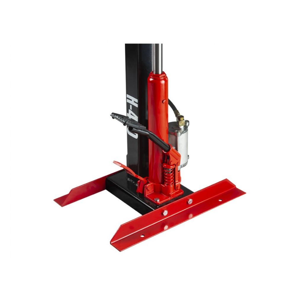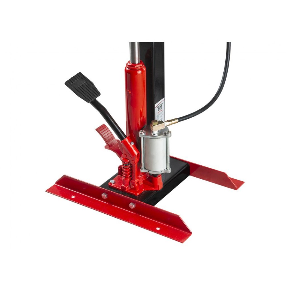 Рух циліндра виконується за допомогою гідравлічного приводу. Для полегшення і пришвидшення роботи є можливість підключити компресор і використовувати стиснене повітря. Керування пристроєм здійснюється за допомогою 2 ножних педалей, одна з яких відповідає за підйом, а інша - за опускання циліндра. Для регулювання плеча з головою в колоні є 8 отворів. Завдяки міцній чавунній конструкції і дрібній різьбі нитки така стяжка пружин надзвичайно довговічна і надійна у роботі.
