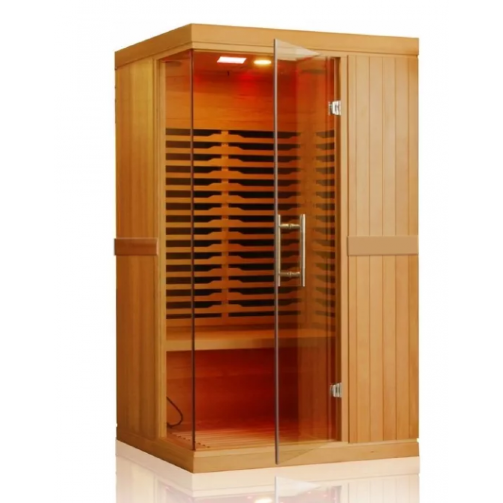 Інфрасауна HECHT LUXURY на 1-2 людини зроблена з канадської ялини, а за опалення відповідають 7 карбонових обігрівачі. Сауна обладнана іонізатором повітря і кольоротерапією. Потужність сауни 2000 Вт, живлення від стандартної мережі 230 В/50 Гц. Таку сауну можна використовувати в будь-якому будинку або більш просторій квартирі. Енергоспоживання такої сауни нижче, ніж, наприклад, у електрочайника, фена або праски. Висота сауни 194 см. Сама збірка дуже проста, стіни з'єднуються зажимами, тому досить стикувати края стінок разом і надійно закріпити. Всі кабелі вже заховані в стінах, тому вам потрібно тільки підключити вже підготовлені роз'єми.
