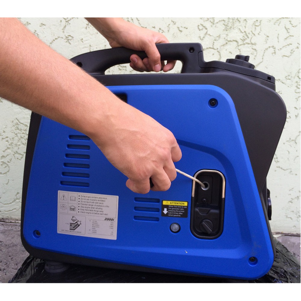 Запуск двигуна здійснюється вручну за допомогою стартера, стискного насоса та дросельної заслінки. Для включення генератора з холодним двигуном після кожної заправки бензином необхідно спочатку закачати паливо в насос шляхом шестиразового натискання і тільки потім смикати стартер. Дросельна заслінка сприяє прискоренню запуску холодного двигуна. Стискний насос із дросельною заслінкою працюють у парі та розташовані біля рукоятки.