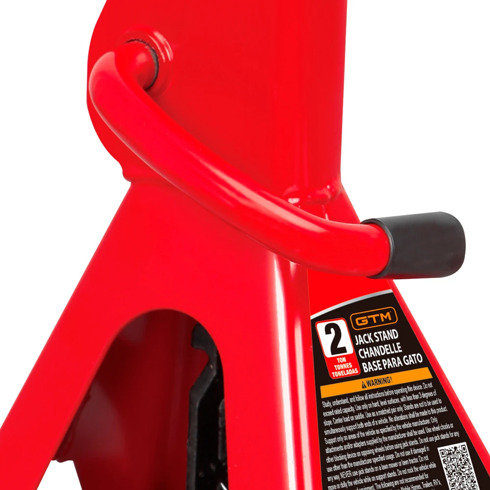 GTM T42001 - комплект із 2 сталевих підставок для фіксації та страховки на висоті автомобілів вагою до 2 т. Підставки застосовуються у разі відсутності естакади або оглядової ями в гаражі.
