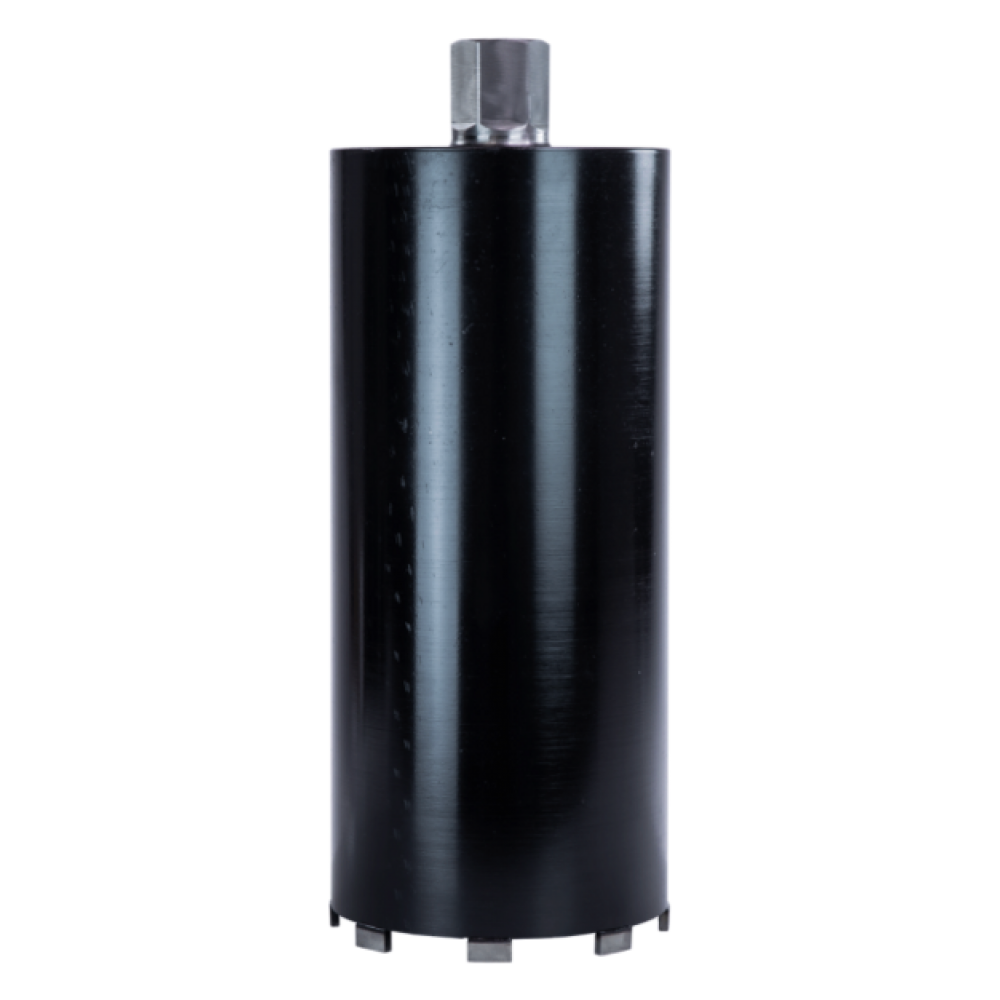 Професійна алмазна коронка Eibenstock, призначена для сухого свердління бетону і каменю. Сегментна алмазна конструкція коронки забезпечує високу ефективність і довговічність під час роботи з найтвердішими матеріалами. Діаметр коронки становить 162 мм, а довжина - 350 мм, що робить її ідеальною для виконання різних завдань зі свердління.