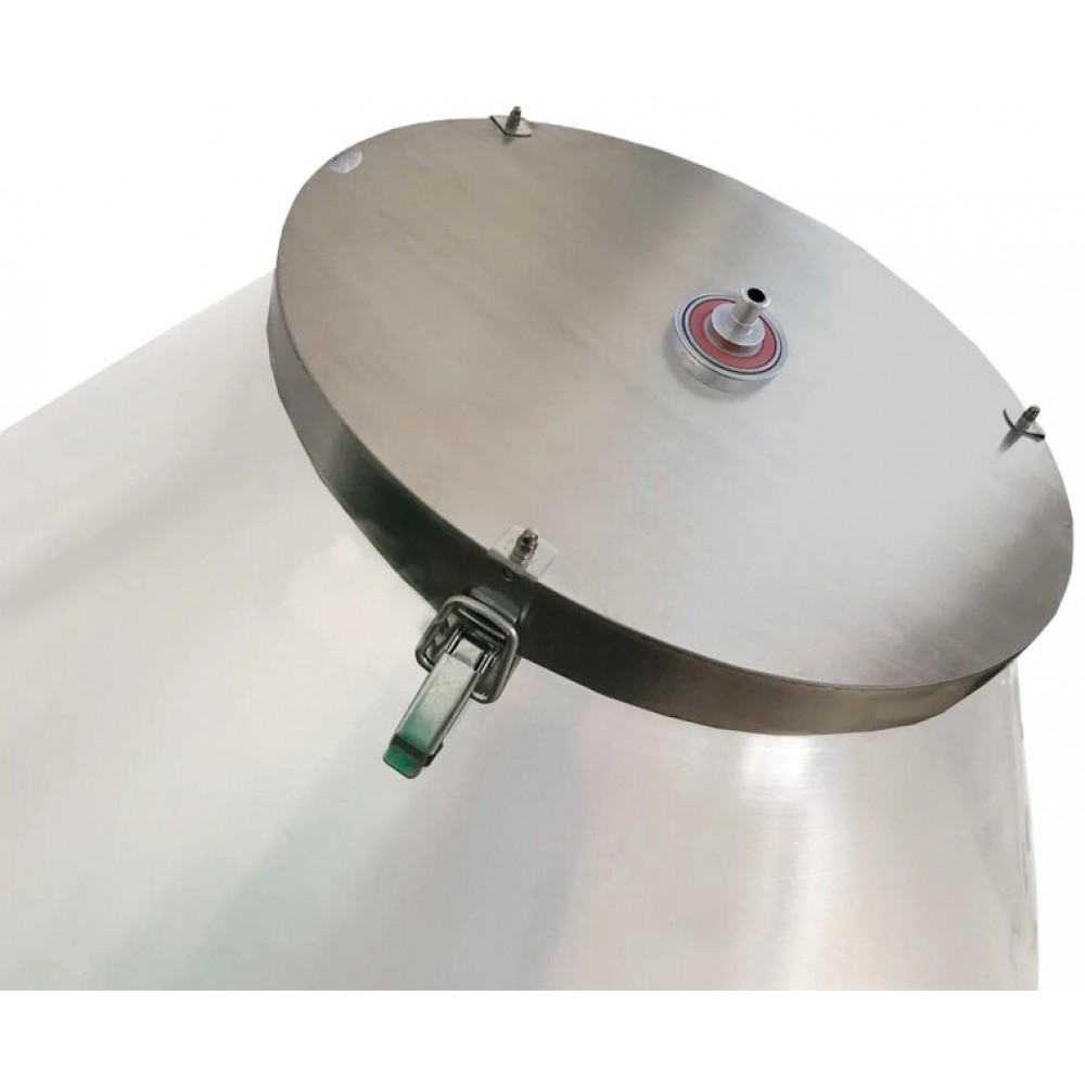 Кришка для харчового змішувача об'ємом від 100 до 200 л відрізняється підвищеною міцністю та жорсткістю конструкції завдяки виготовленню з нержавіючої сталі товщиною 2 мм. Фіксація кришки на змішувачі здійснюється з використанням трьох засувок або двох засувок та петлі.