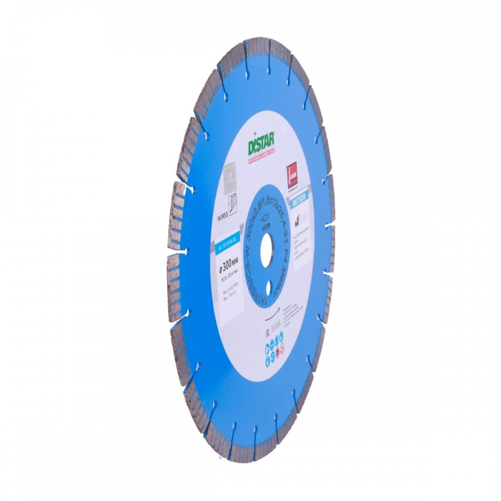 Алмазний диск Distar 1A1RSS C3W Meteor використовується в якості основного витратного інструменту при різанні армованого бетону середнього і високого рівня. Показує високу швидкість роботи, продуктивність і ресурс при роботі навіть з важким високоармірованного бетоном. Зокрема при роботі на бензоріз досягає швидкості роботи до 2 метрів в хвилину, при ресурсі до 600 погонних метрів. У випадку зі алмазна ресурс досягає 700 метрів при швидкості до 2,75 пог / хв. В асортименті магазину представлений в декількох варіантах, зокрема в діаметрі від 300 до 600 міліметрів. Застосовується в комбінації з швонарезчікі і бензорізи середньої потужності (від 5 до 13 кВт).