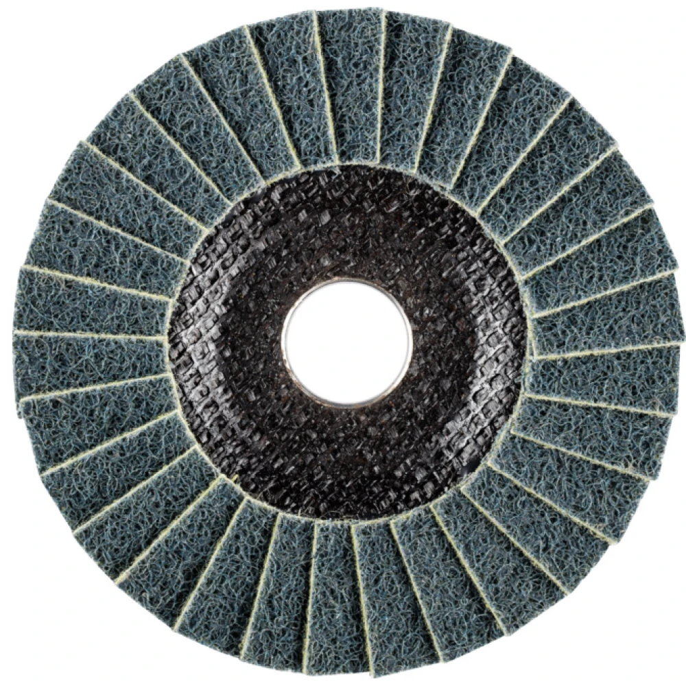 Лепестковый пористый шлифовальный круг Pferd POLIVLIES PVL 125 A 100 G - тарельчатый круг на болгарку для деликатной эластичной шлифовки металла и пластика.