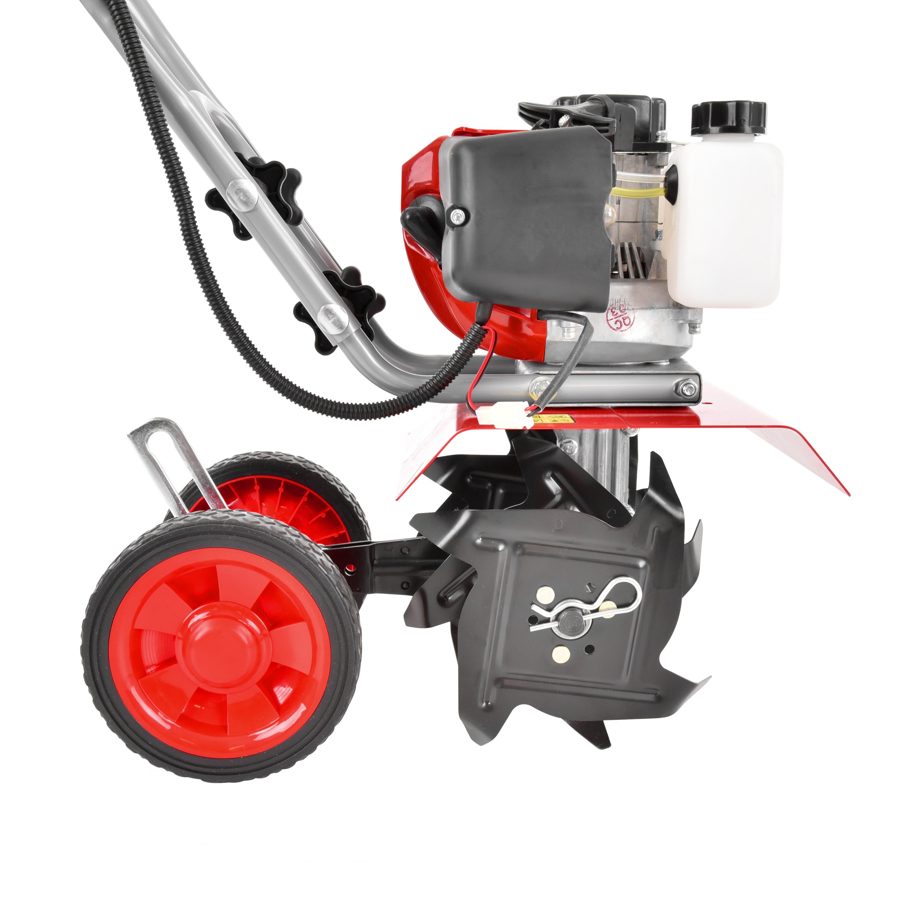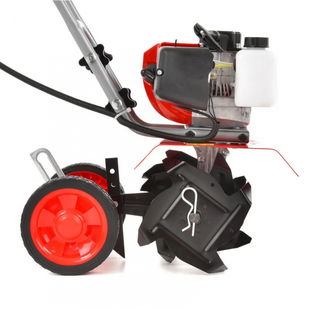 У порівнянні з електричними культиваторами з аналогічними параметрами дана модель має ту перевагу, що не залежить від електричної мережі, а без кабелів працювати легше і вільно. Він також оснащений колесами для легкого переміщення і транспортування.