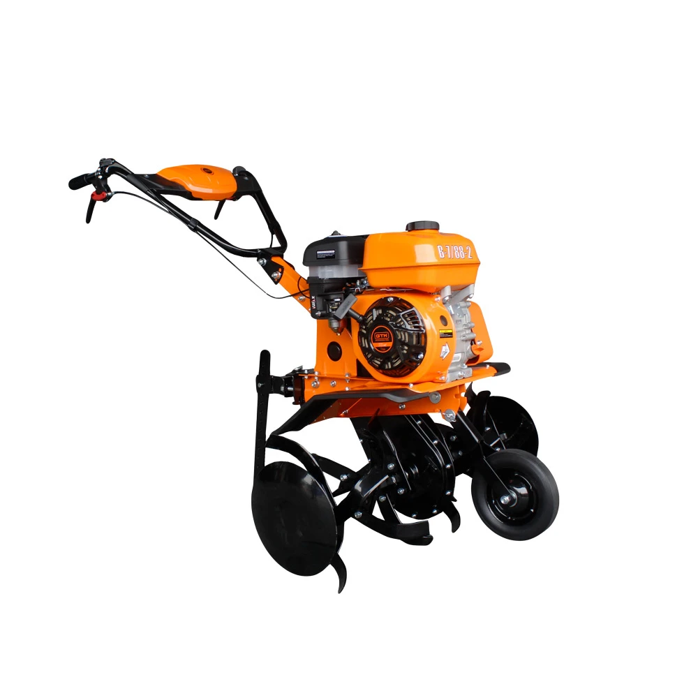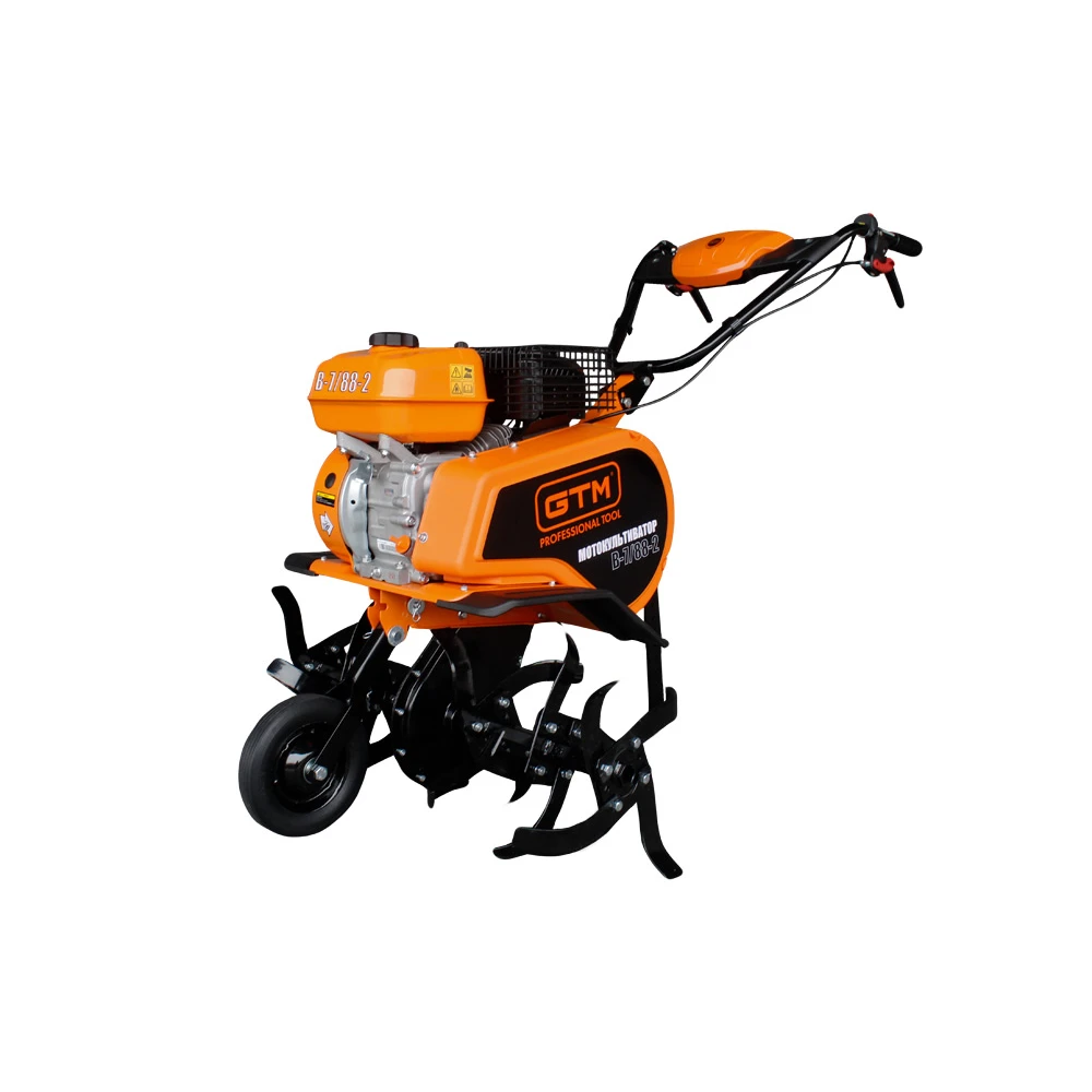 GTMB-7/88-2- садова техніка побутового класу для обробки землі, оранки грядок та городів невеликої площі. Дана модель культиватора оснащена бензиновим двигуном з потужністю 7 к.с (5,2 кВт) зі збільшеним крутним моментом для кращої роботи. Ширину культивації під час роботи можна регулювати від 350 мм до 880 мм, залежно від ширини грядки.