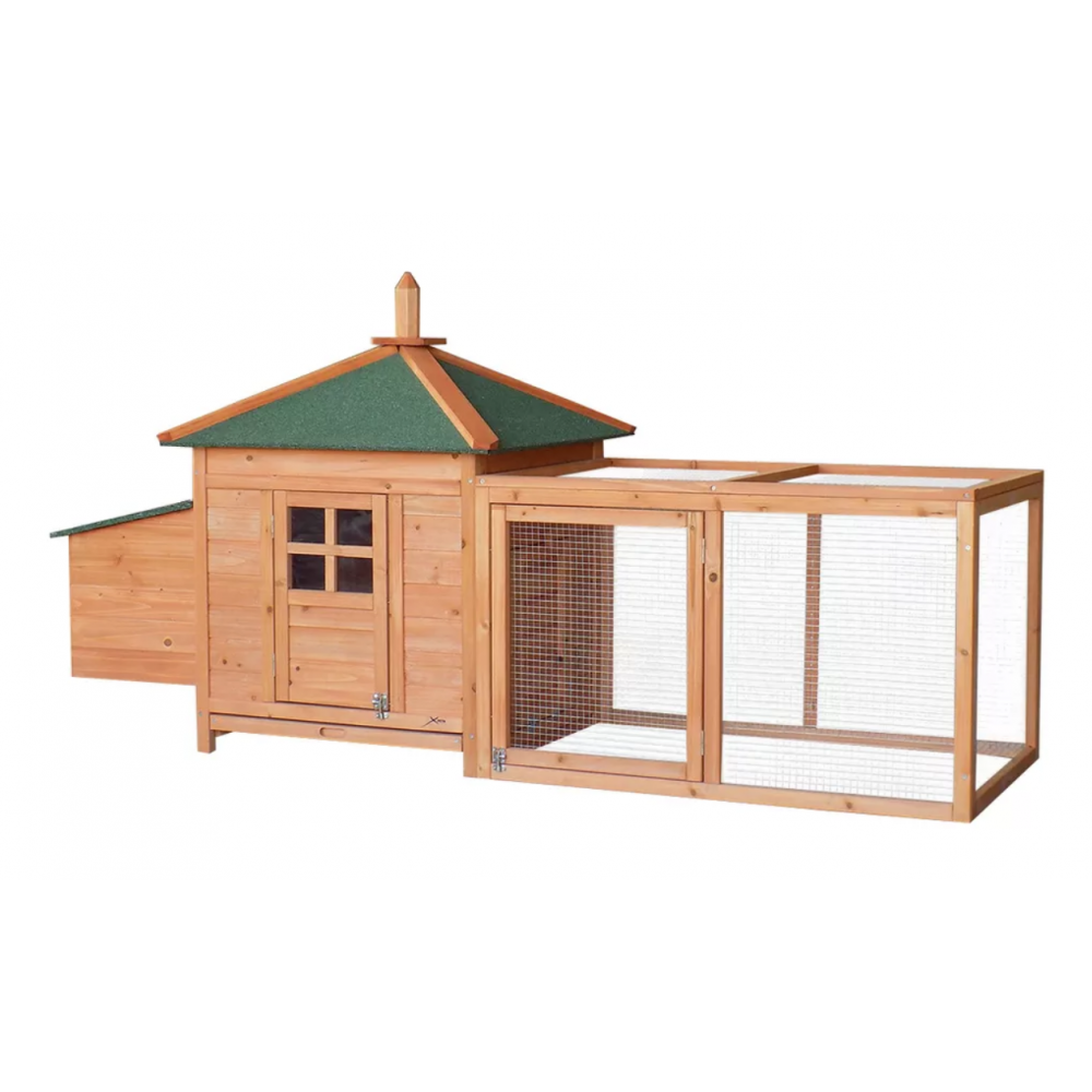 Курник розрахований на розміщення 3 курей або подібних за розміром тварин. Усередині ви знайдете затишний житловий простір з двома сідалками для відпочинку. Двері доступу дозволяють вашим птахам виходити на вуличний вольєр, де вони можуть бродити на траві. Ідеальний розмір курника для будь-якого заднього двору, патіо чи газону.
