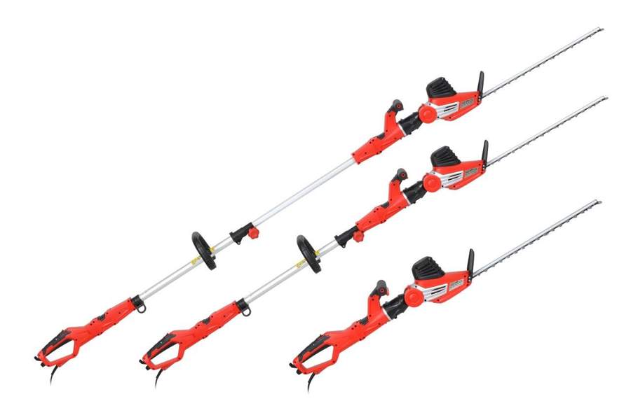 Практична висувна телескопічна ручка дозволяє нескінченно регулювати довжину триммера від 2,35 до 2,80 м. Так що робота на висоті можлива, і ви можете обрізати дерева до 4,0 м. Таким чином, живоплоти можна зручно зрізати від землі до крони дерев!