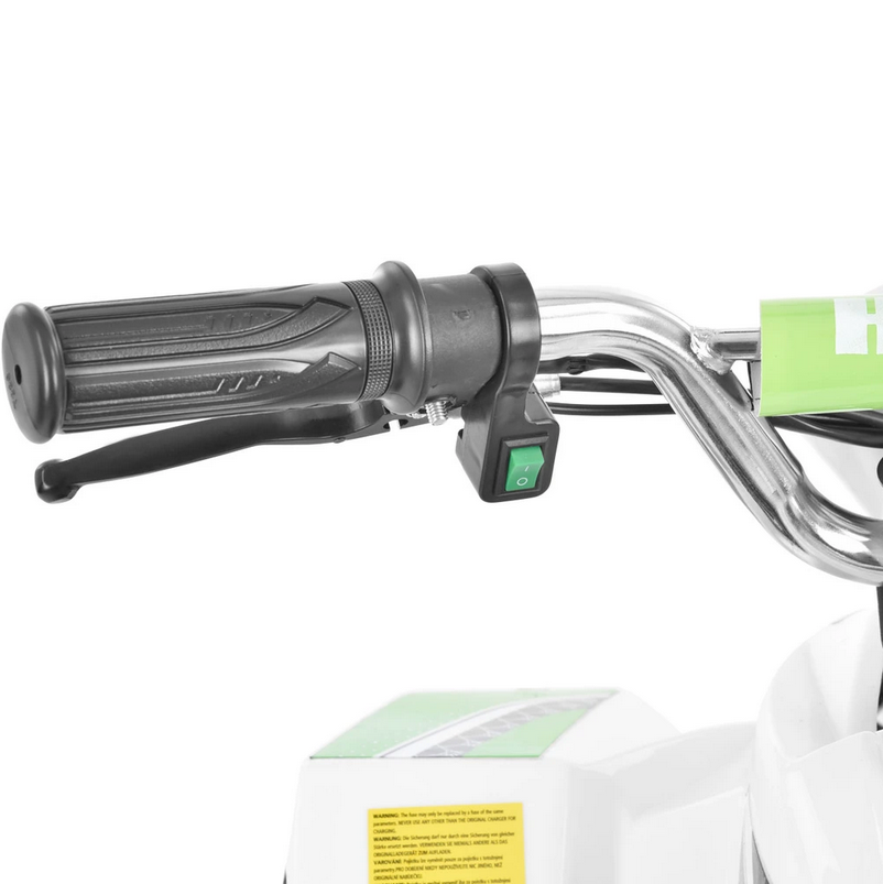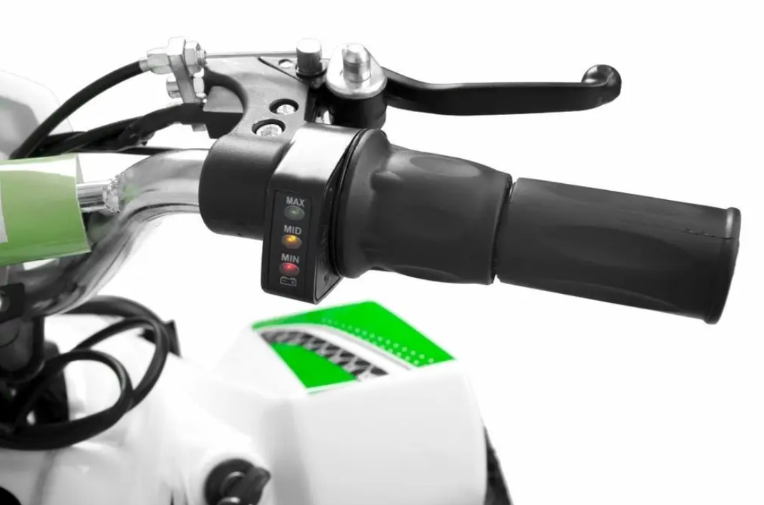 Перемикач переднього світла і кнопка звукового сигналу на лівому поручні. Однією особливістю безпеки є ножна педаль, яку потрібно утримувати ногою для переміщення.