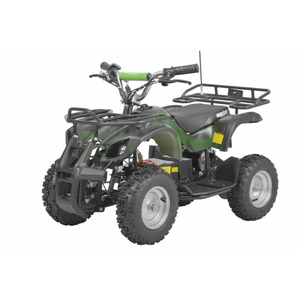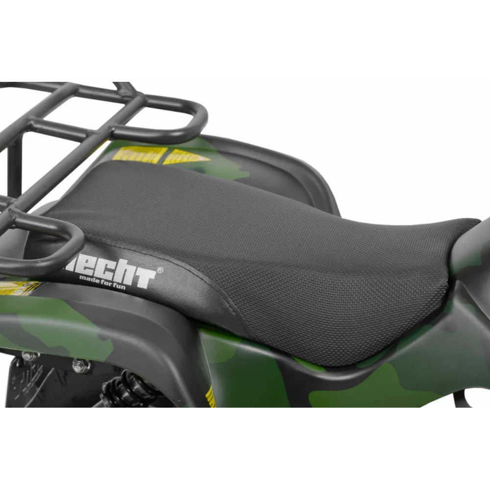 HECHT 56800 ARMY — невеликий квадроцикл на акумуляторі, призначений для активного відпочинку. Працює від електродвигуна потужністю 800 Вт, який живиться від свинцево-кислотного акумулятора 36 В, 12 Ач. К олеса 6" з шинами, дискові гальма. Час зарядки зарядним пристроєм, що входить в комплект, 6-8 годин. Запас ходу на одному заряді до 18 км в залежності від навантаження та рельєфу. Звичайно, на запас ходу також впливає використання фар або стиль водіння. Максимальна швидкість до 20 км/год, за допомогою обмежувача її можна знизити приблизно до 8 км/год.