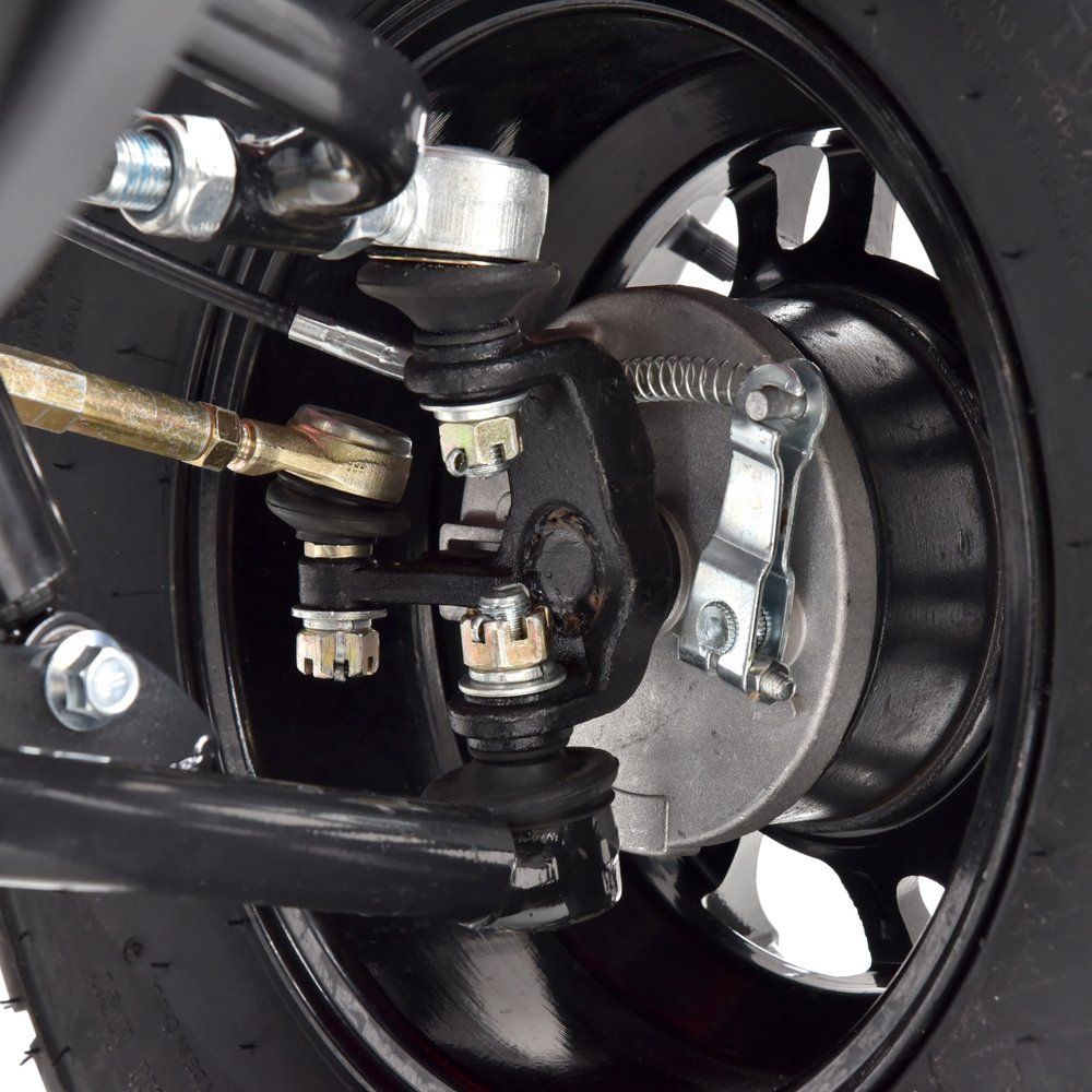 Квадроцикл оснащений передніми барабанними гальмами і задніми - дисковими Передні барабанні гальма приводяться в дію важелем на кермовому колесі, задні дискові гальма приводяться в дію педаллю правою ногою.