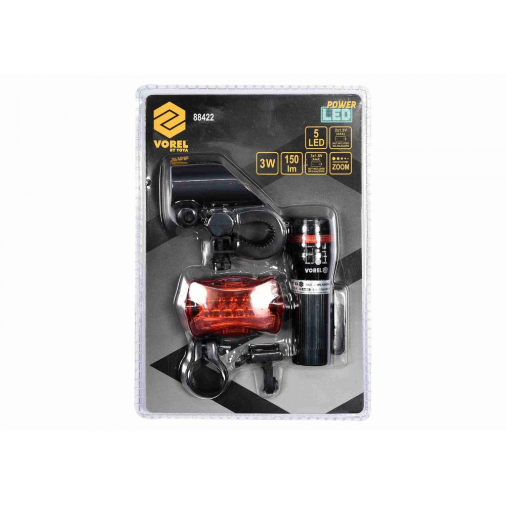 Ліхтар для велосипеда світлодіодний VOREL 3 Вт 150 лм 3 x ААА + 2 x АА