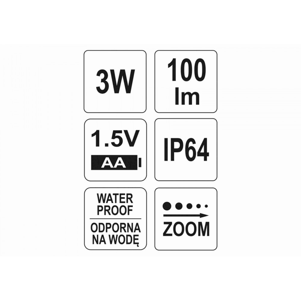 Ліхтар кишеньковий світлодіодний YATO 3 Вт 100 лм 100 х 25 мм 1 х АА