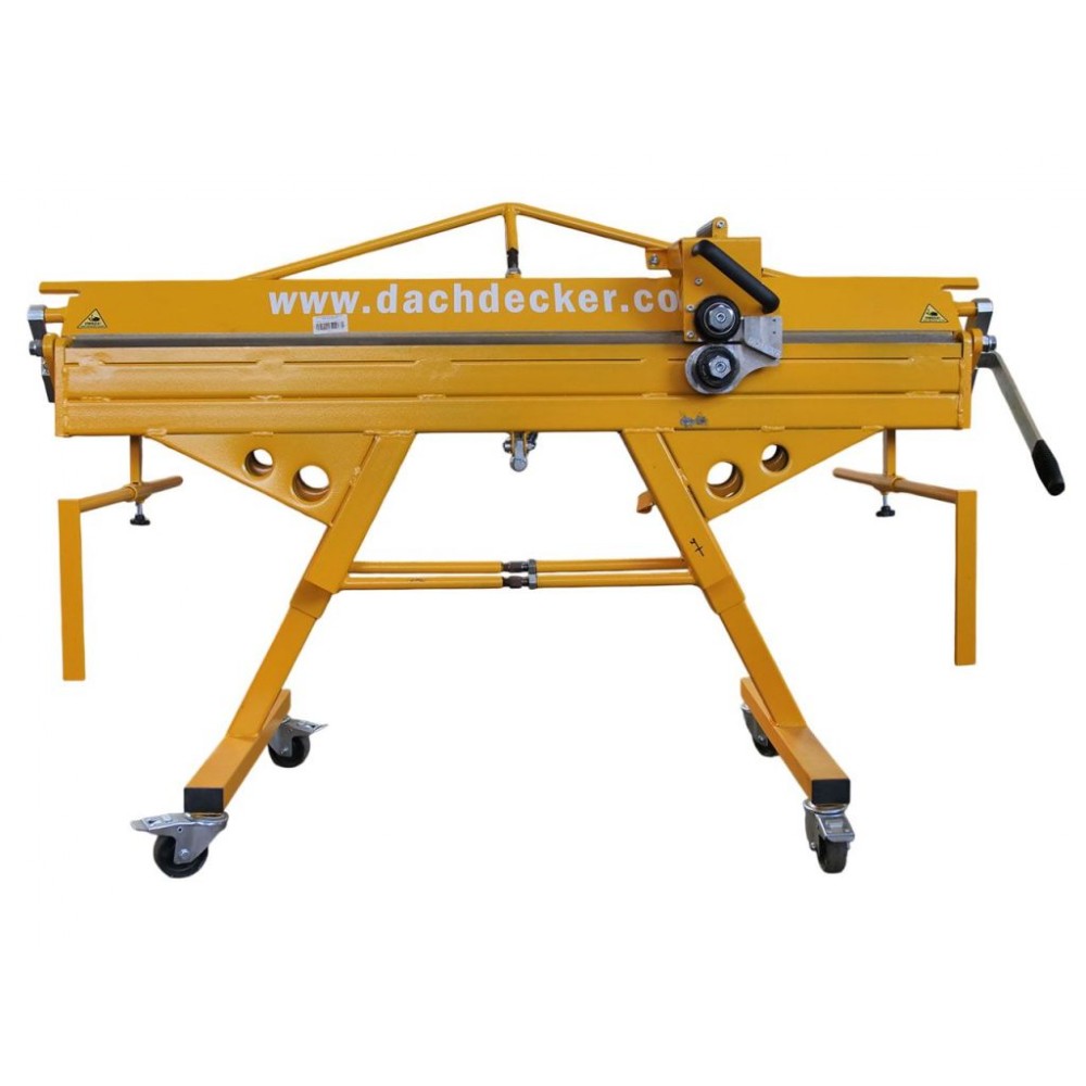 Листозгинальний верстат Dachdecker ZRF-LM1400/1,5 з робочою шириною 1400 мм відмінно підходить для виготовлення невеликих покрівельних та вентиляційних елементів, а також дрібних будівельних конструкцій. Може працювати з товщиною листової сталі до 1,5 мм. В стандартну комплектацію входить роликовий ніж з високолегованої сталі, який дозволяє різати сталеві листи товщиною до 0,8 мм.
