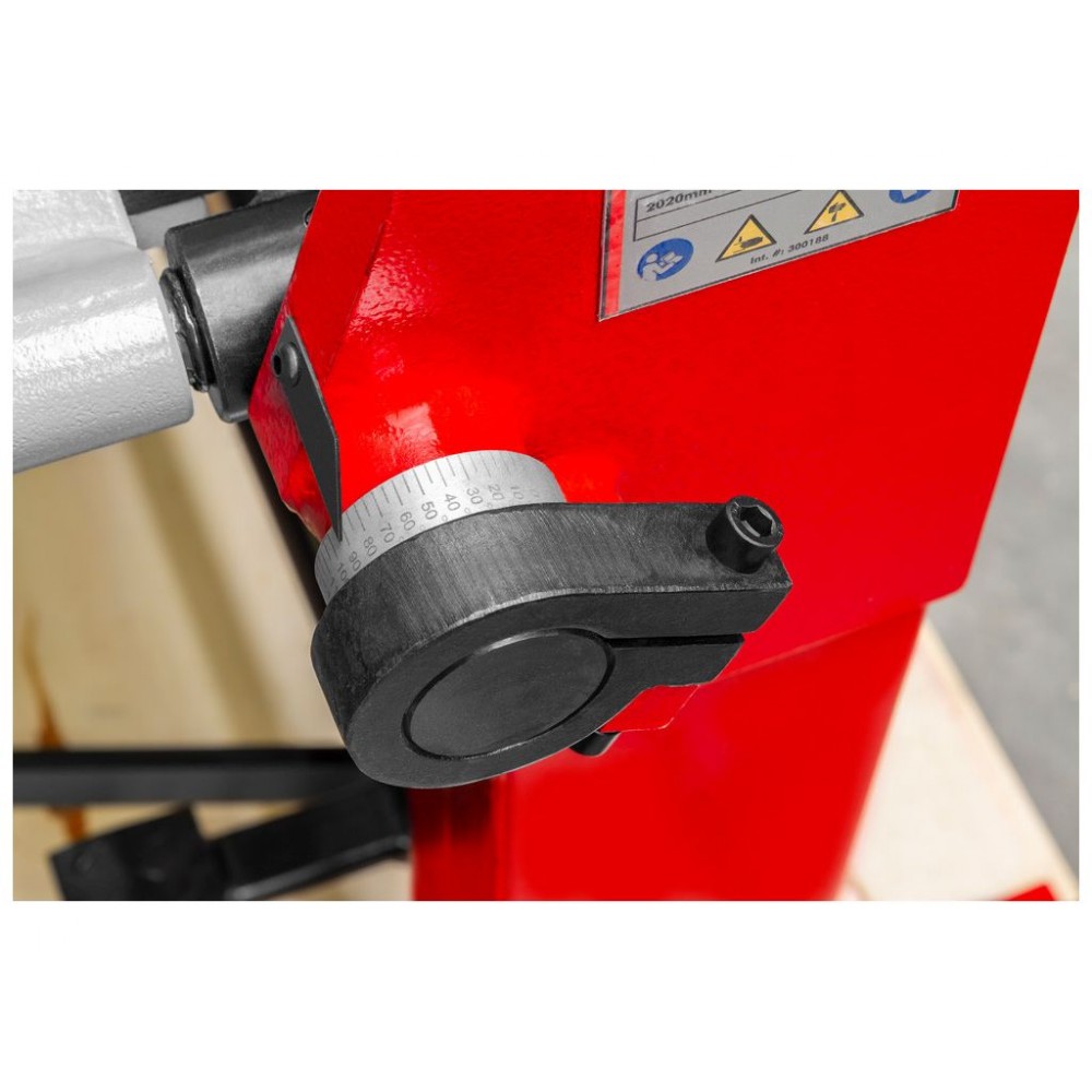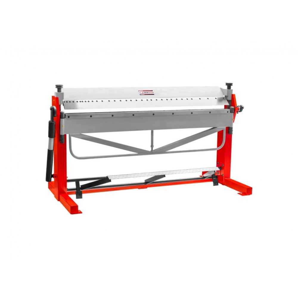 Листозгинальний верстат Holzmann AKM 2020 з робочою шириною 2020 мм призначений для згинання листового металу товщиною до 1,2 мм під кутом до 135°. Притискна балка з сегментами різних розмірів, що легко знімаються та переставляються, дозволяє виготовляти деталі зі складною геометрією та різноманітні конструкції. Підйом притискної балки здійснюється ножною педаллю. Максимальний зазор між балками становить 47 мм, регулювання зазору проводиться регулювальними гвинтами.