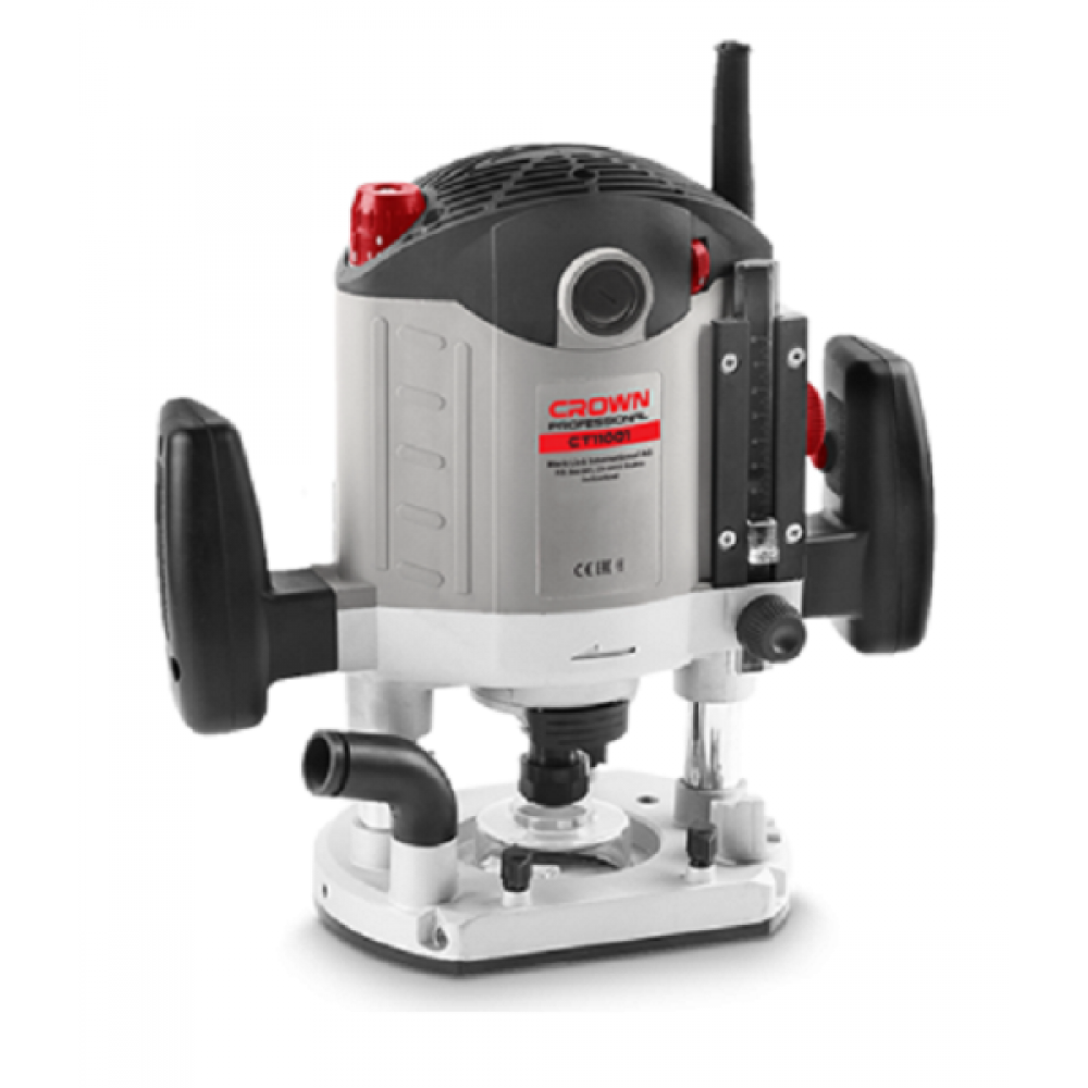 Корпус машини виконаний із міцного металу, а ручки оснащені протиковзким покриттям для зручності використання. Машина фрезерна Crown CT11001 призначена для професійного використання та ідеально підходить для обробки дерева, пластику та металу.