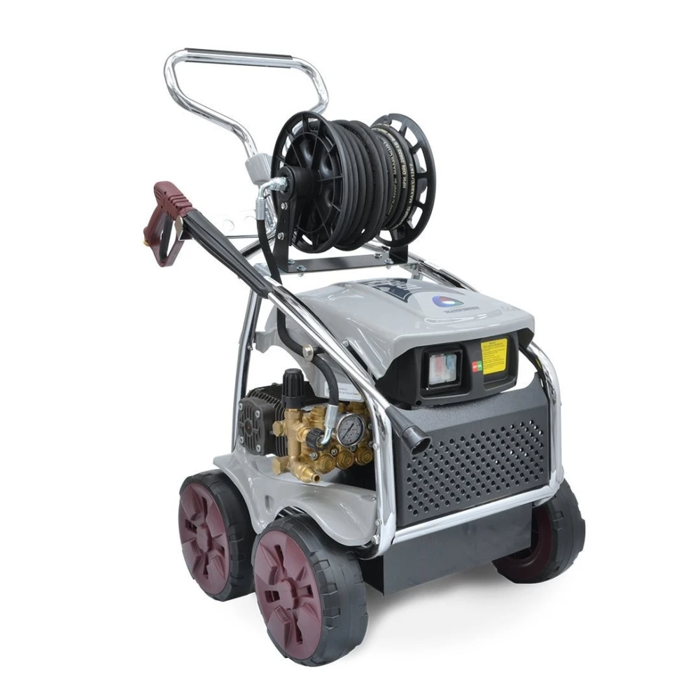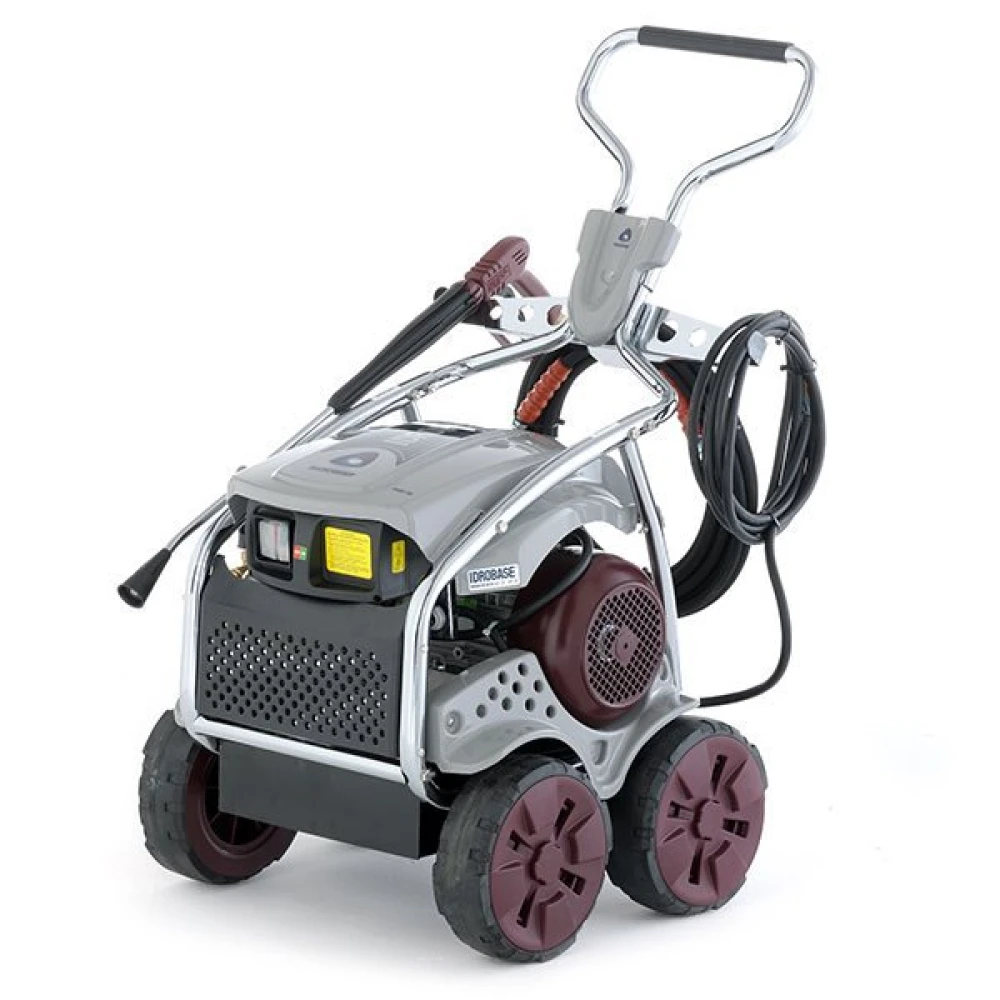 Idrobase Transformer ZX.2668-HR-TS - професійний апарат для чищення поверхонь від забруднення за допомогою води під високим тиском. Призначена для використання у промислових та побутових умовах до 8 годин на день. Ця модель працює від мережі 380 В і споживає 7,5 кВт потужності. На виході видає 900 літрів води за годину під тиском до 200 бар. Корпус виготовлений з термоформованого полістиролу та встановлений на раму з нержавіючої сталі.