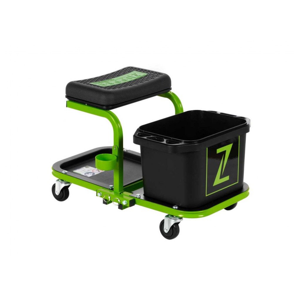 Монтажний стілець з контейнером для мийки Zipper ZI-MHKW5 - це надзвичайно зручне і практичне пристосування для автомийок, детейлінг-студій і гаражів, яке дозволяє комфортно працювати з колесами, дисками, крилами, порогами та іншими нижніми частинами автомобілів. Зменшує навантаження на спину та ноги, що важливо при тривалій роботи в присяді. Оснащений контейнером для води об’ємом 5 л, тримачем для миючого засобу і відсіком для зберігання інструментів та аксесуарів. Витримує навантаження до 150 кг.