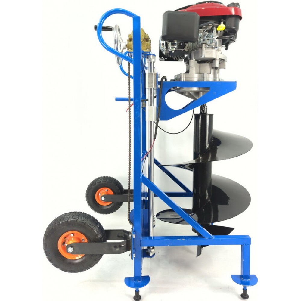 - підйом та опускання за допомогою лебідки полегшує керування мотобуром, знижує фізичне навантаження на користувача та підвищує точність буріння.