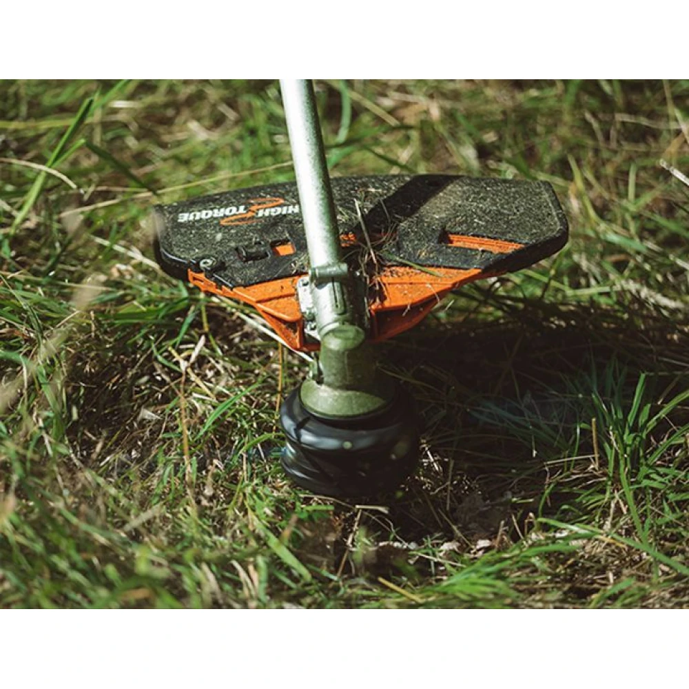 - Комбінований захисний кожух може використовуватися як з трімерною голівкою, так і з ножем для трави