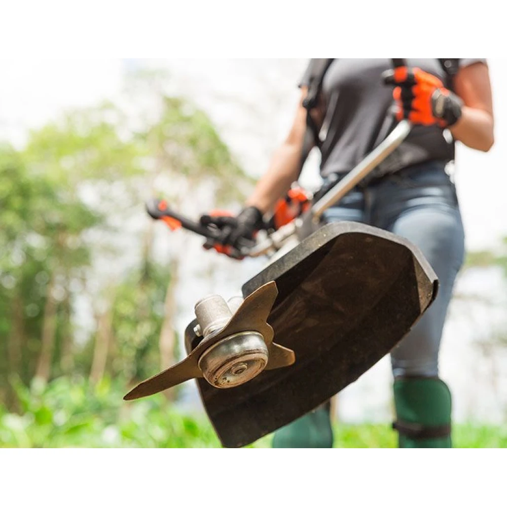 - Завдяки сталевому кованому валу і посиленому композитному зчепленню мотокоса легко витримує максимальні навантаження