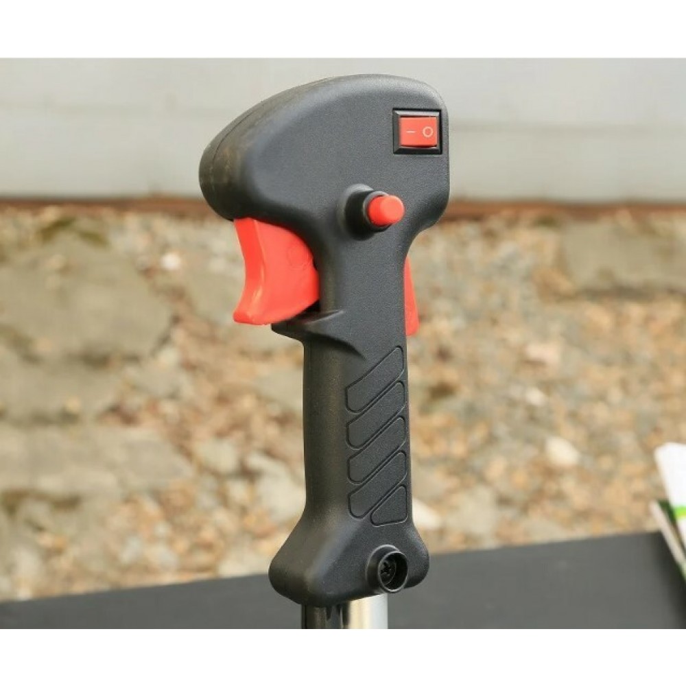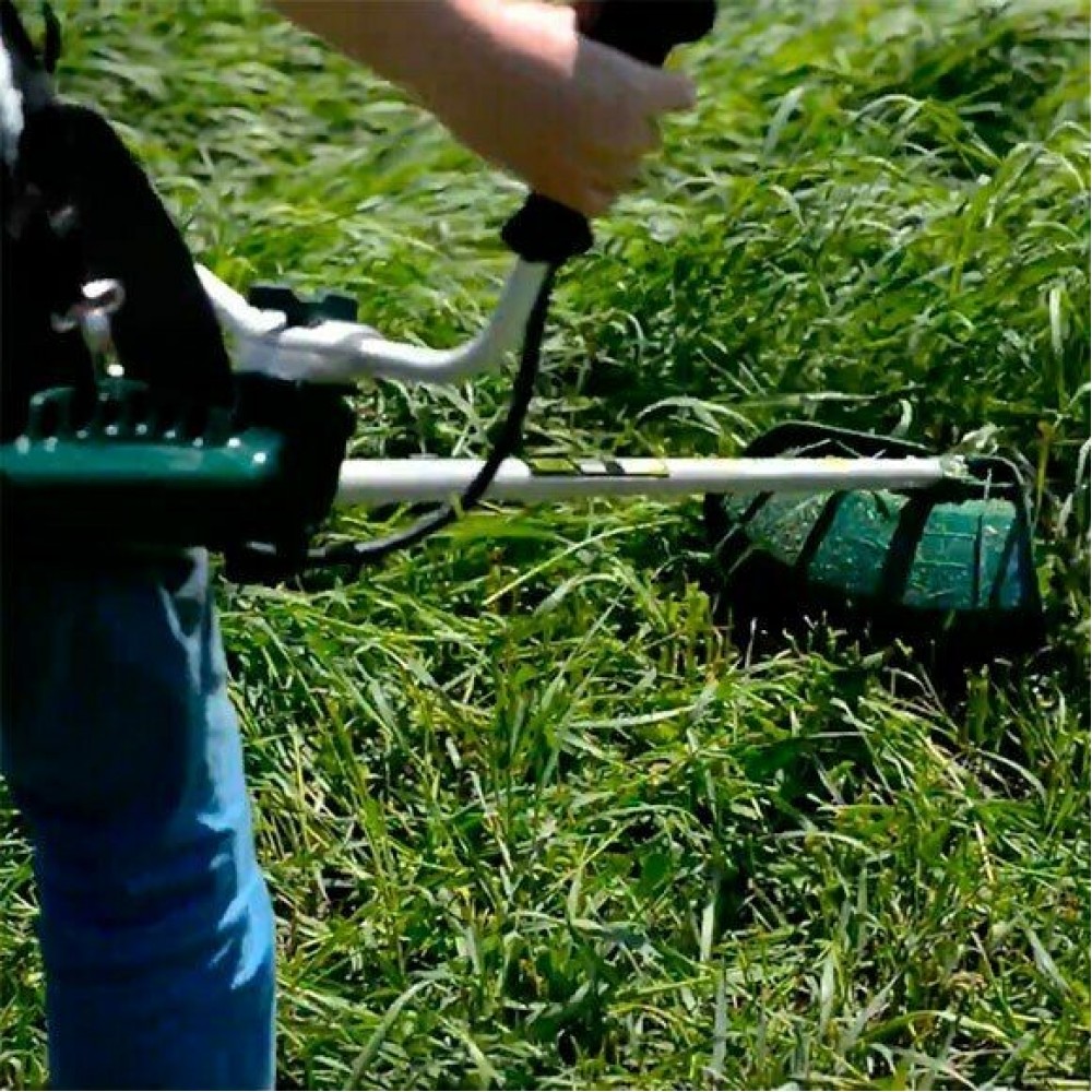 Нероз'ємна труба зі сталі підвищує міцність збалансованого інструменту, яким можна обкошувати місцевість із рельєфом різної складності. Захисний кожух затримує відходи зрізу, що вилітають, запобігає травмуванню користувача.