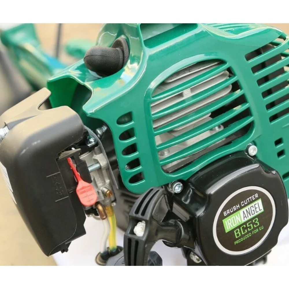 Мотокоса Iron Angel BC53 - функціональна садова техніка для покосу трав'янистих рослин на важкодоступних ділянках, обробки кромок газонів, зон вздовж огорож, навколо перешкод, а також просторих галявин. Мобільний агрегат дозволить оперативно вирішити питання небажаної рослинності на територіях будь-якої площі, додати вид рослинному покриву.