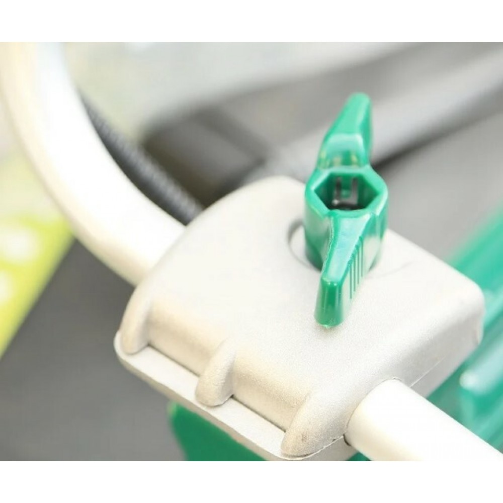 У конструкції бензокоси використане «кермо» як у велосипеда, за рахунок чого функціонування зручне для оператора і дає можливість точно задавати траєкторію руху, контролювати рівень розмаху. На праву ручку виведено кнопки регулювання.