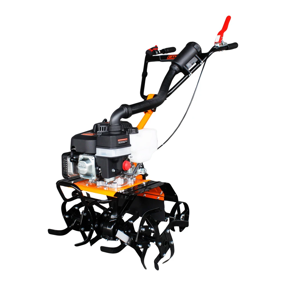 GTM G-4,5/55 - садова техніка побутового класу для обробки землі, оранки грядок та городів невеликої площі. Дана модель культиватора оснащена бензиновим двигуном з потужністю 4,5 к.с (3.31 кВт) зі збільшеним крутним моментом для кращої роботи. Ширину культивації під час роботи можна регулювати від 350 мм до 550 мм, залежно від ширини грядки.