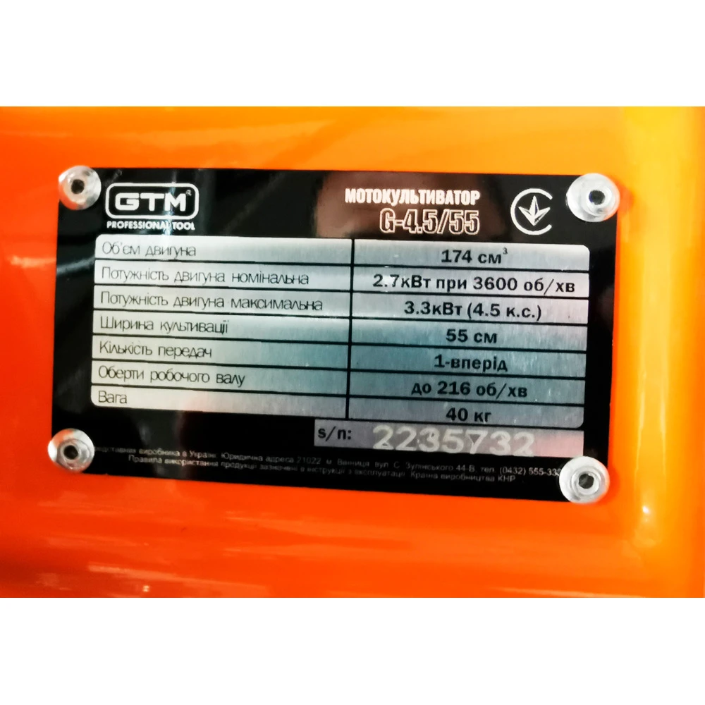 Опис Мотокультиватор GTM G-4,5/55 бензиновий, 4,5 к.с.