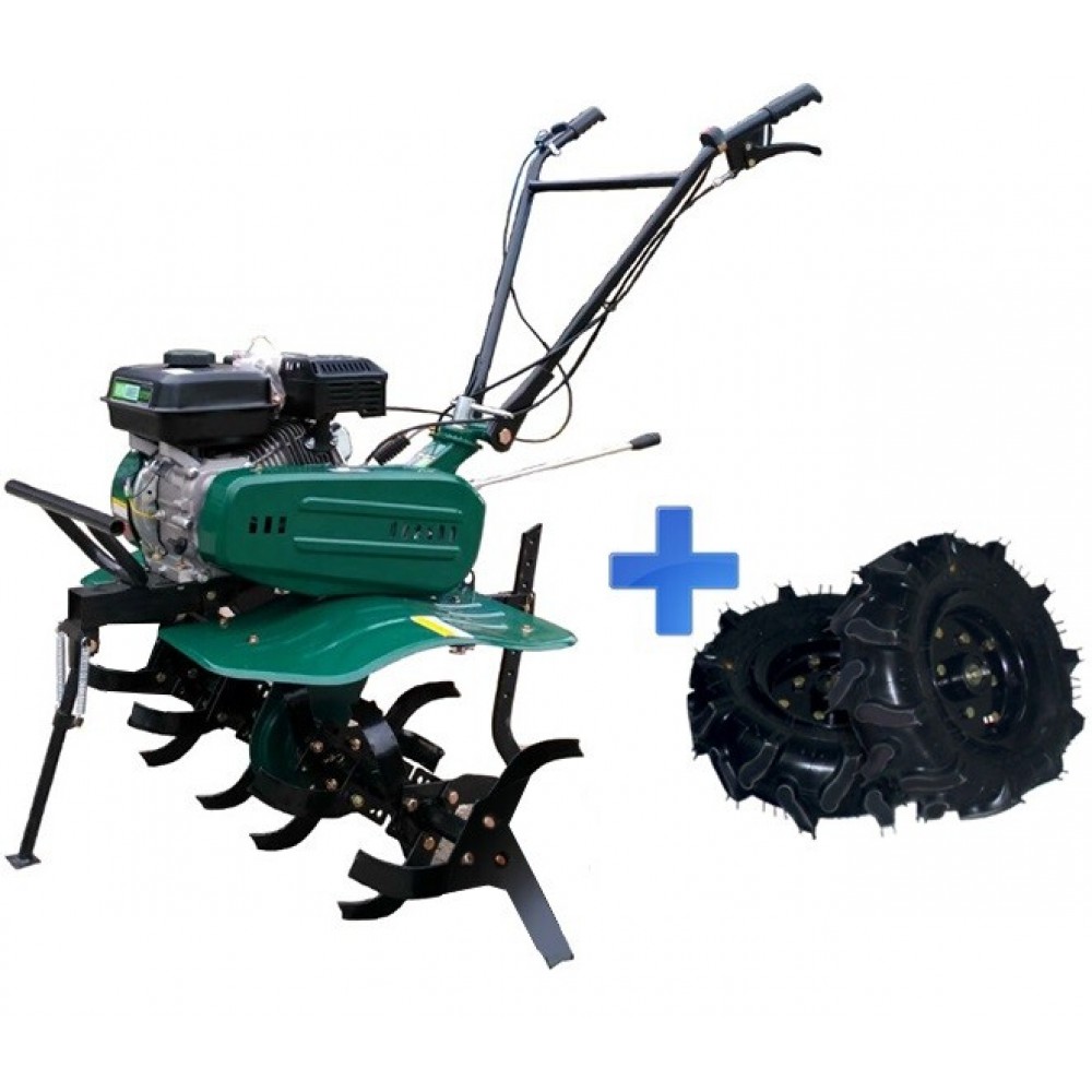 - мотокультиватор; - фрези (8 шт.); - пневмоколеса (2 шт.); - шків на 3 струмки; - Інструкція з експлуатації; - гарантійний талон; *захисні диски не входять до комплекту постачання