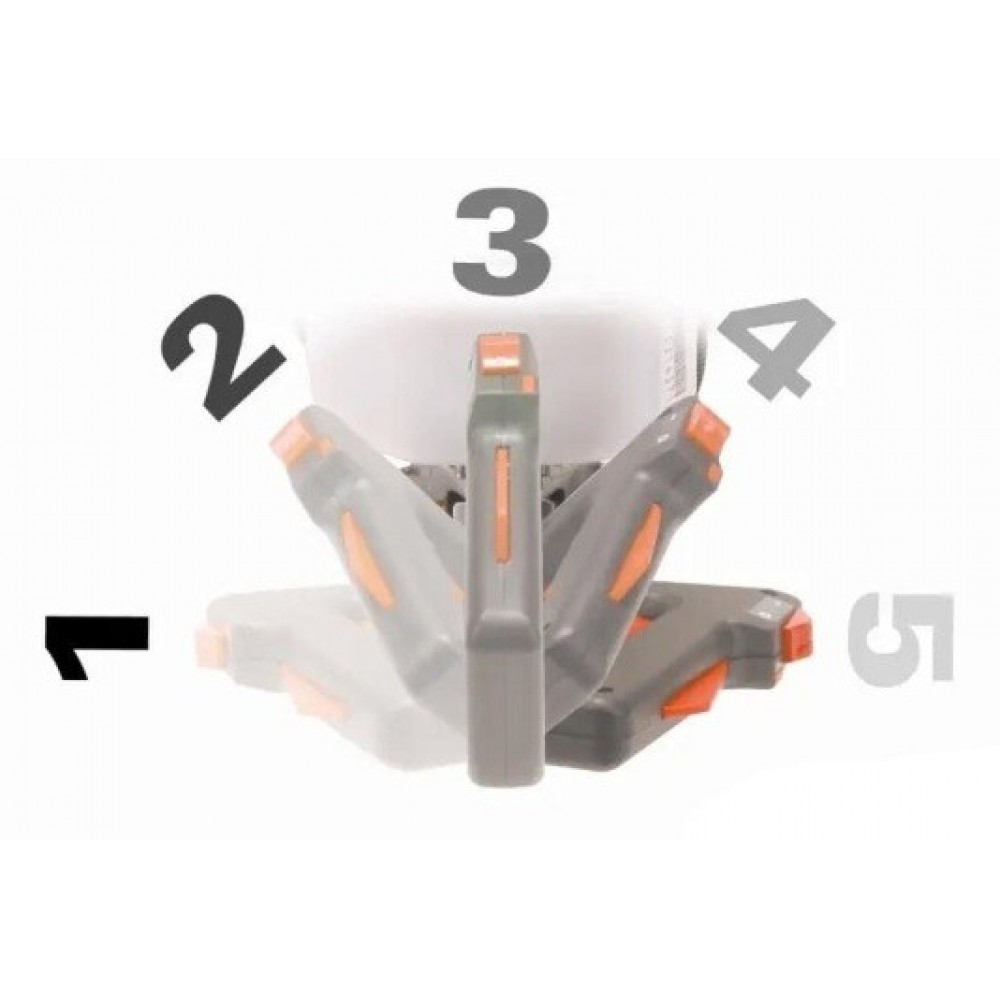 - Рукоятка з можливістю повороту на 180 градусів та фіксацією в 5 положеннях дозволяє працювати в різних положеннях для максимального комфорту;