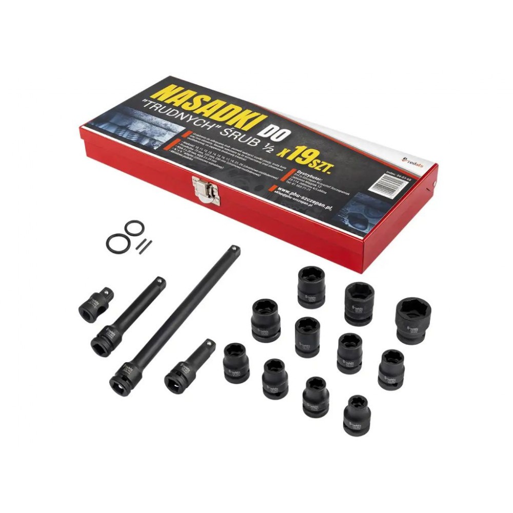Набір насадок для пошкоджених/зірваних гайок та болтів, 19 шт REDATS