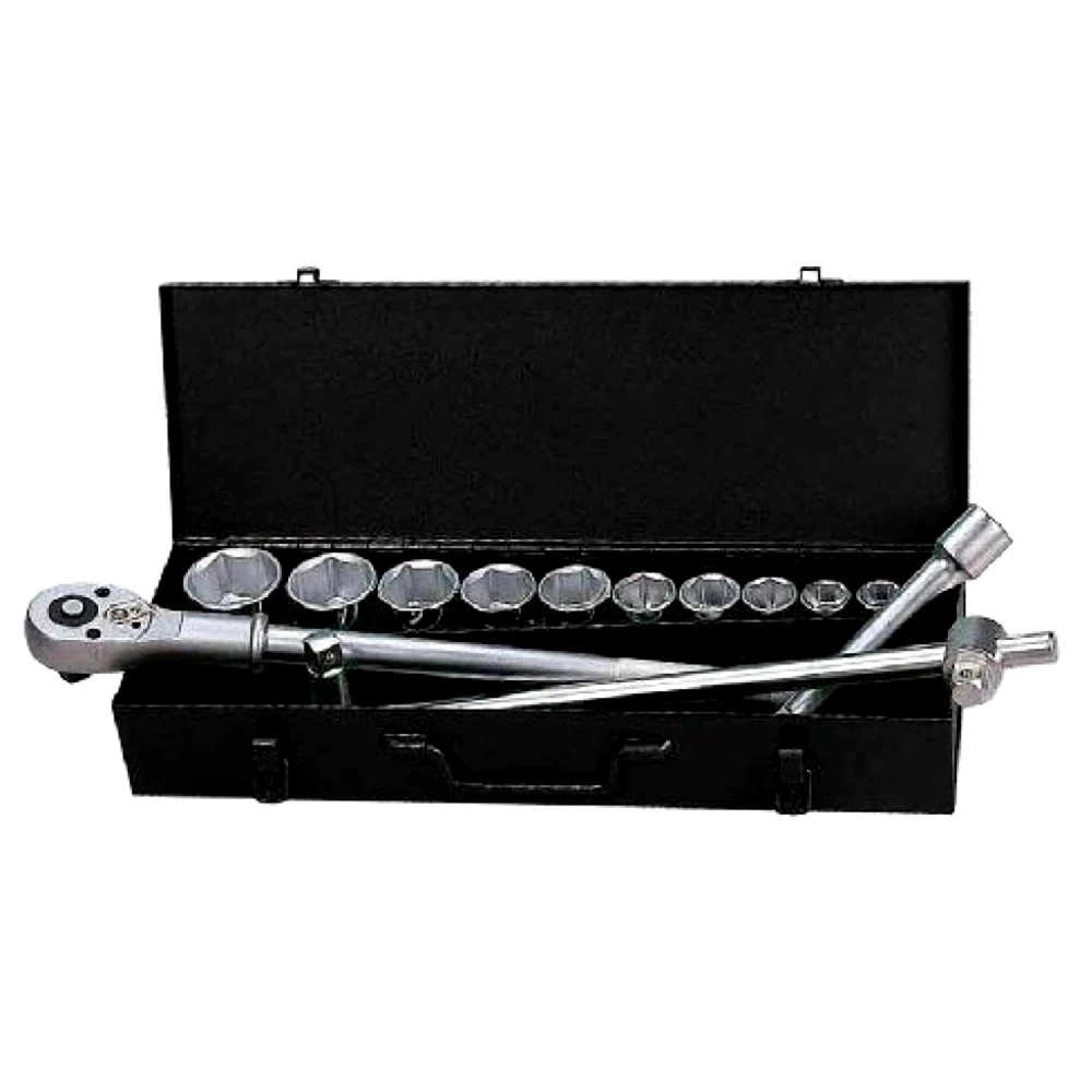 Whirlpower 1616-0221 - набір із 16 ручних торцевих 12-гранних головок для посадкового квадрата 3/4". Поставляється в металевому кейсі з тріскачкою, комплектом подовжувачів і Т-подібним воротком.