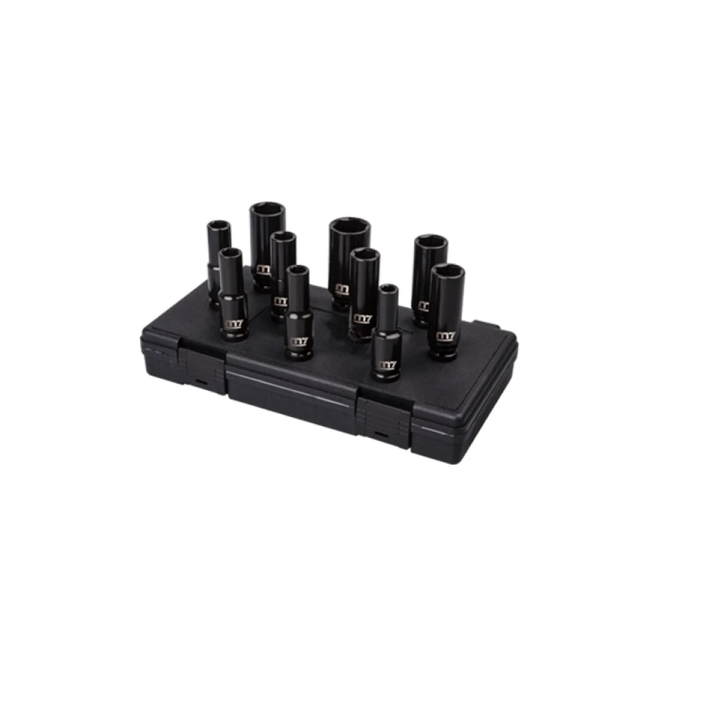 Набір ударних подовжених головок (10 шт) в пластиковому кейсі: 10мм, 12 мм, 13 мм, 14 мм, 15 мм, 17 мм, 19 мм, 21 мм, 24 мм, 27 мм