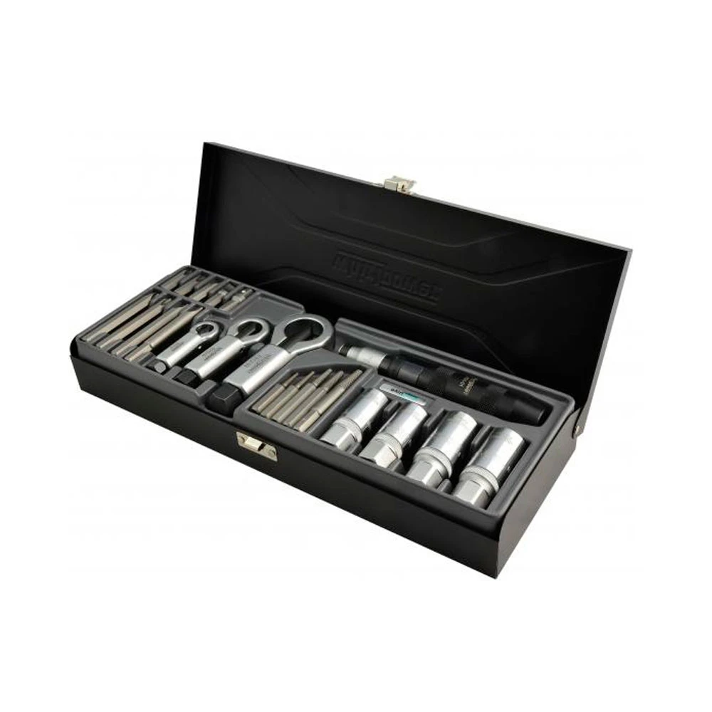 Whirlpower F01-TK01 - набір для відкручування пошкоджених гайок, болтів та інших гвинтових з'єднань. Поставляється в металевому кейсі.