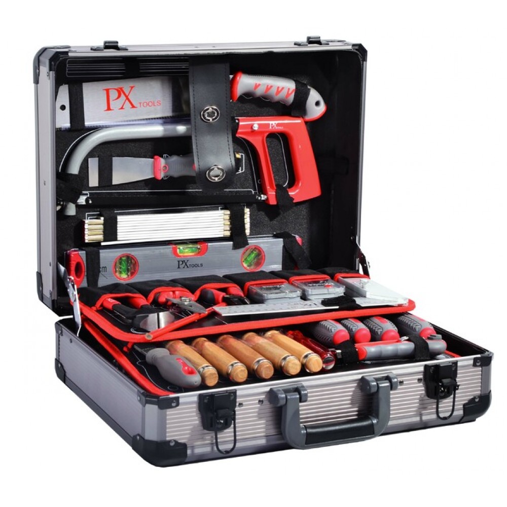 Инструментальный чемодан Utool U10101SW – это универсальный набор из 120 инструментов, продуманно и компактно размещенных в металлическом кейсе особого строения. Основная целевая направленность набора инструментов под кодом U10101SW – это столярные работы разной степени сложности. Поэтому большая часть инструментов в кейсе подобрана именно для работы с деревом и древесными материалами – фанерой, древесно-стружечными плитами. Их качество и разнообразие удовлетворит не только домашнего мастера-любителя, а и столяра-профессионала.