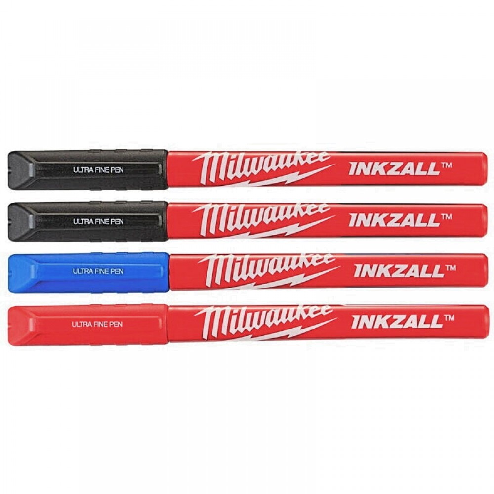Набір маркерів Fine Tip InkZAll MILWAUKEE, синій/червоний/чорний/чорний, (4шт)