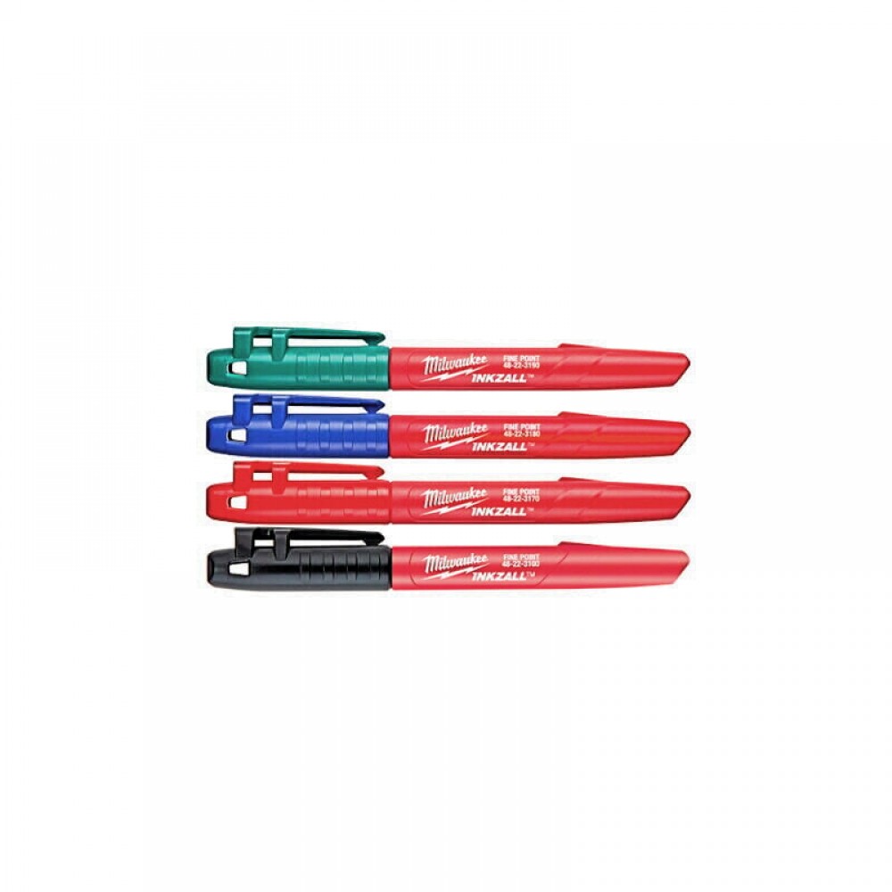 Набір маркерів InkZAll MILWAUKEE, ультра-тонких, синій/червоний/злений/чорний, (4шт)