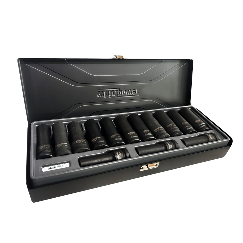 Whirlpower1274-IS01 - комплект торцевих головок для використання з ударними гайковертами з посадковим квадратом 1/2". Набір включає 14 головок подовженого формату, які поставляються в металевому кейсі.