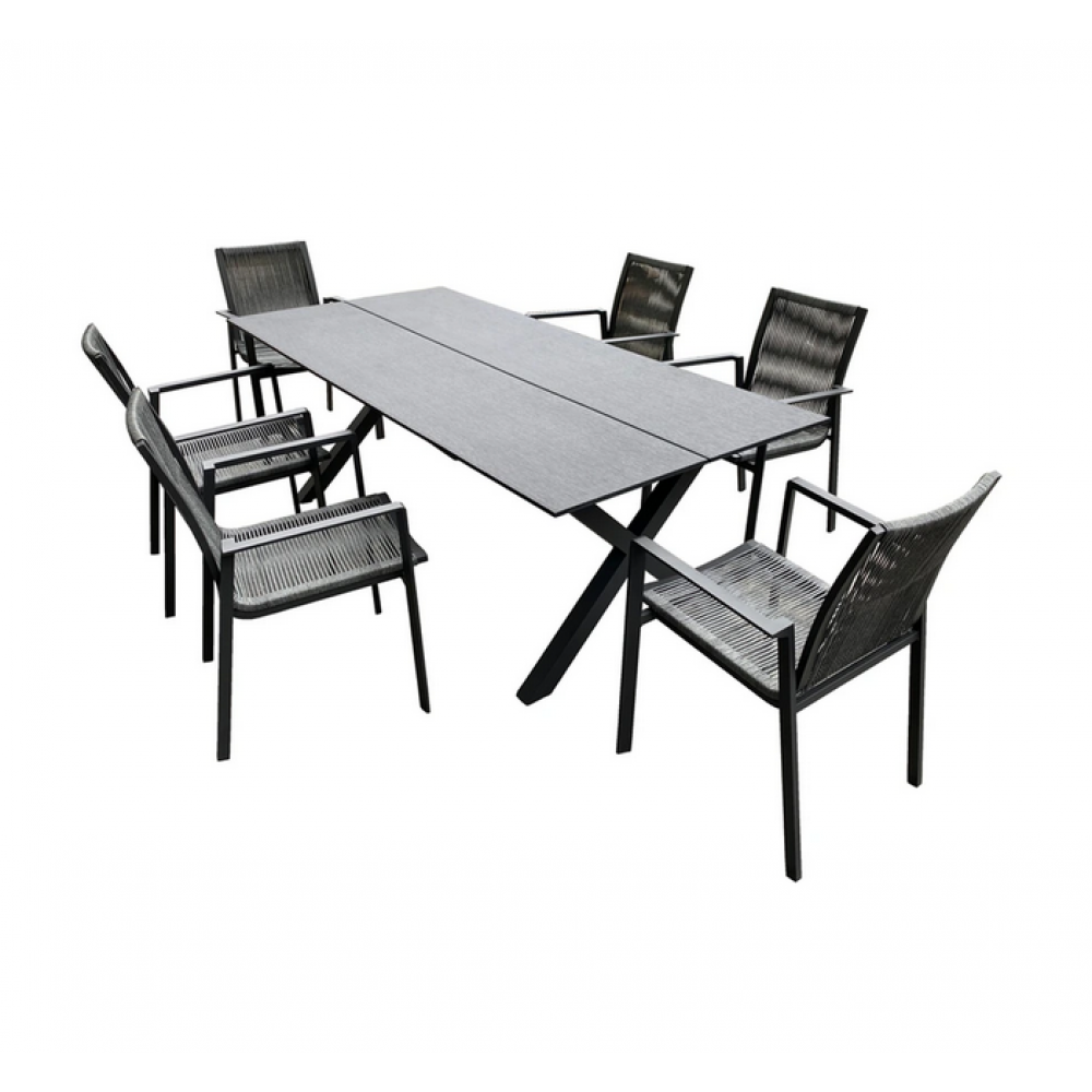 Комплект садових меблів HECHT MATHEO SET - це розкішний набір для вашого саду або тераси. Він складається з шести стільців і столу, виготовлених з міцних матеріалів з обробкою Kommaxit та поліпропілену. Вониі ідеально підходять для зовнішнього та внутрішнього використання, а також вологої атмосфери. Розмір столу дозволяє комфортно розміщувати страви та напої, а висока якість матеріалів забезпечує довговічність цього набору.