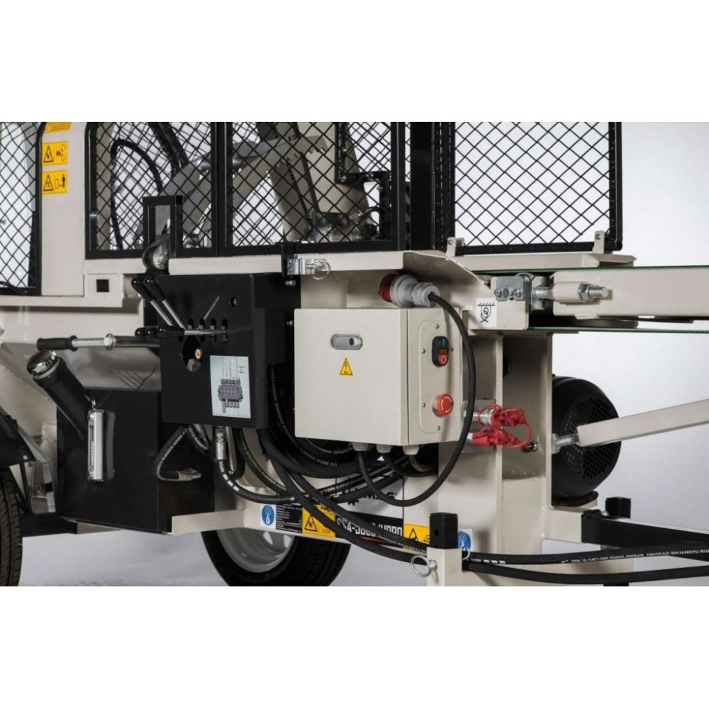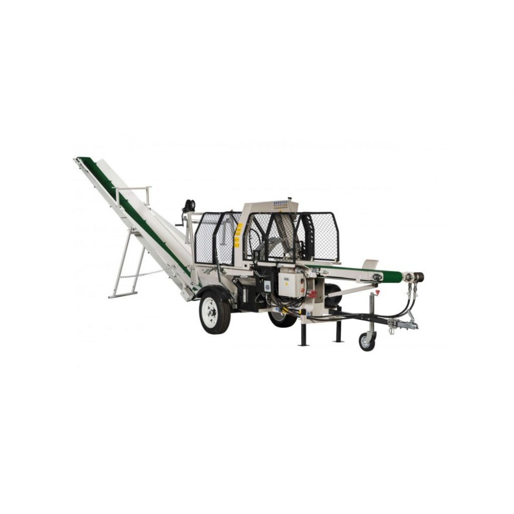 Напівавтоматична машина для різання і розколу дров Lumag SSA500EHPRO - це ефективне і надійне обладнання, яке виконує одразу три процеси. Ланцюгова пила розпилює деревину на задану довжину, потім колун розколює попередньо розрізаний брусок на 2 або 4 частини. За допомогою стрічкового транспортера довжиною 3,2 м дрова транспортуються безпосередньо на причіп чи у інше обране вами місце. Максимальна висота подачі деревини становить 2 метри.