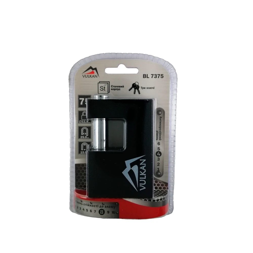 Навісний замок Vulkan BL7375 - це надійний замикальний пристрій напіввідкритого типу для закривання дверей, воріт, гаражів і інших приміщень з передовими антикорозійними та зламостійкими технологіями.
